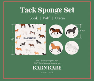 1pc square sponge sheet with 4pc sponge rounds for wiping down your saddles, boots, or your horse's sweat marks.