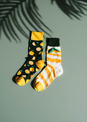Fun mid-length socks with mix-match designs.