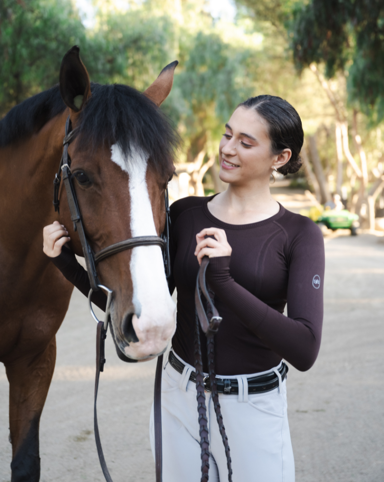 A rich, luxurious espresso brown that seamlessly blends style with functionality. An easy color to match with both light or dark breeches. also compliments both dark and light skin complexion.