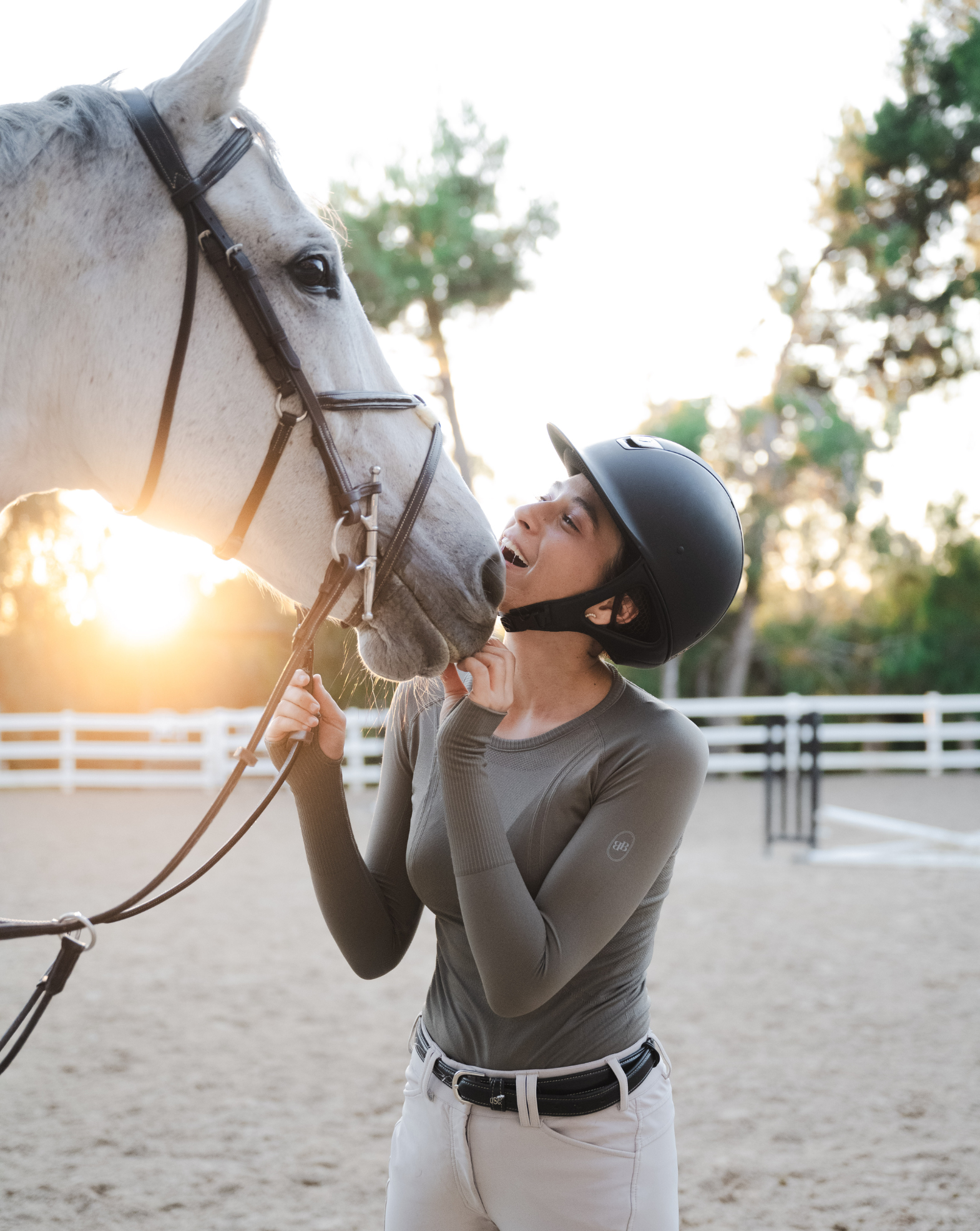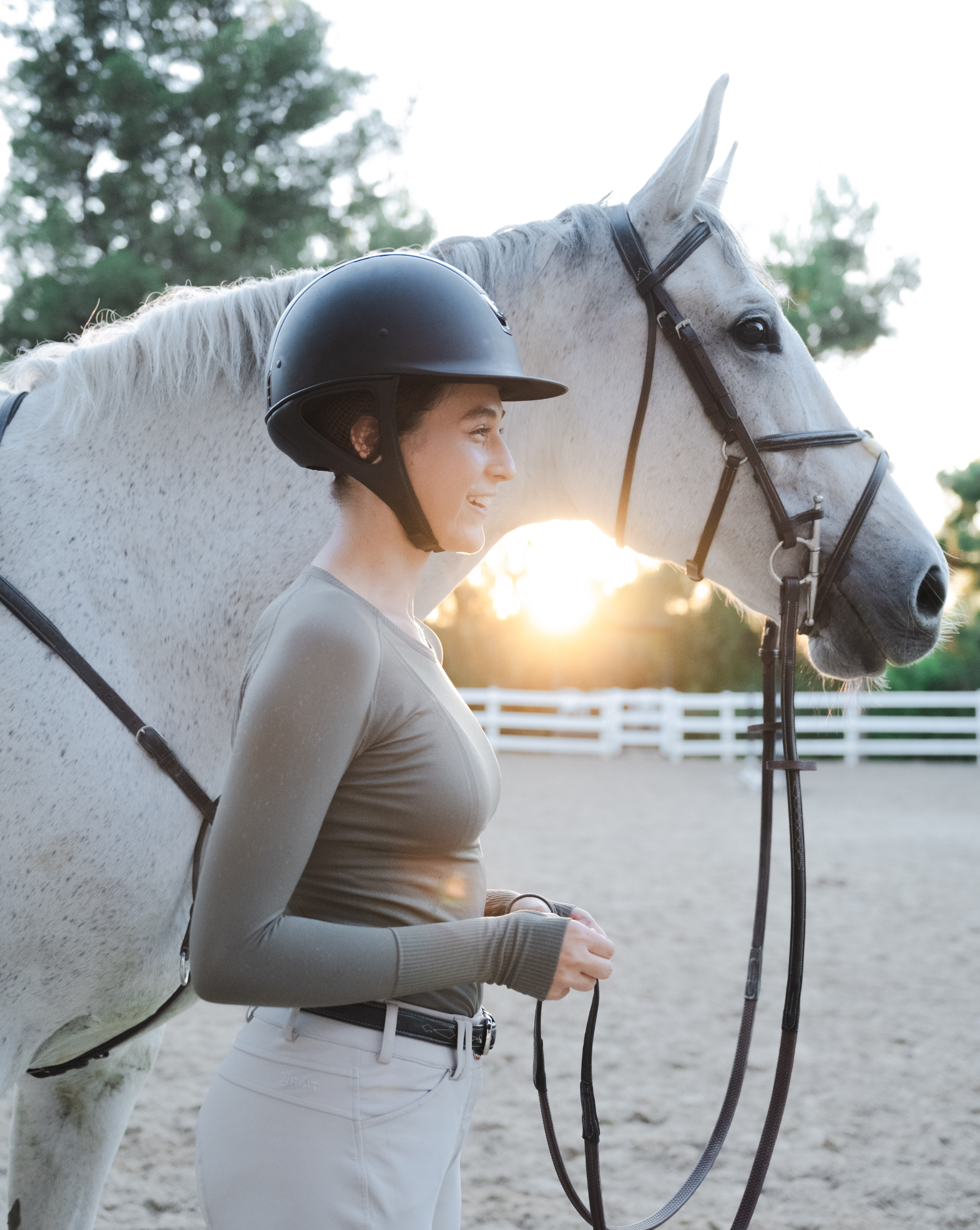 A sophisticated olive green, perfect for light tan breeches, or dark brown ones.