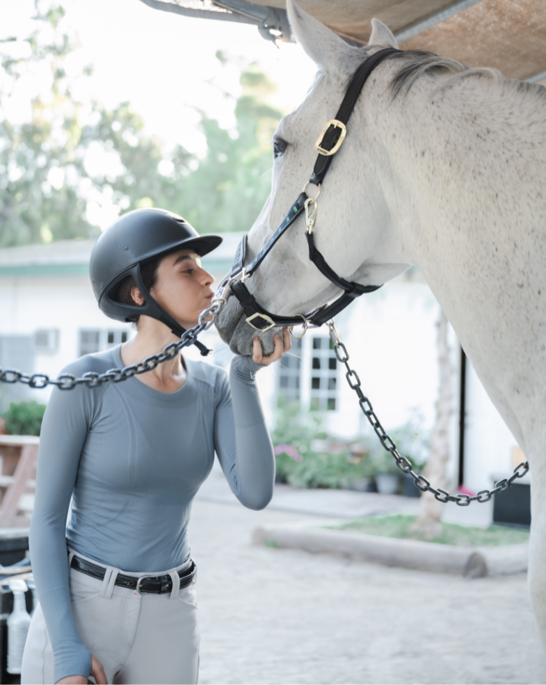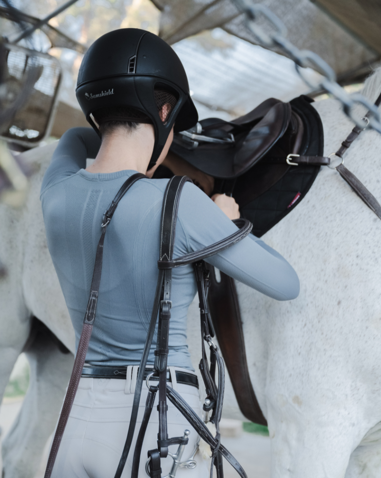 An all-time favorite, our long-sleeve training shirts come in a classic muted blue with a shade of grey.