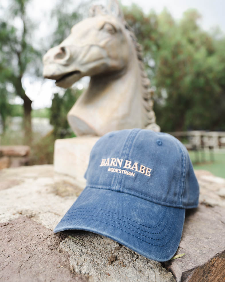 Made with washed denim, this 6-panel baseball cap has an elegant embroidery design in the front, a velcro enclosure in the back, and an opening for your ponytail! A great solution to post-ride helmet hair.